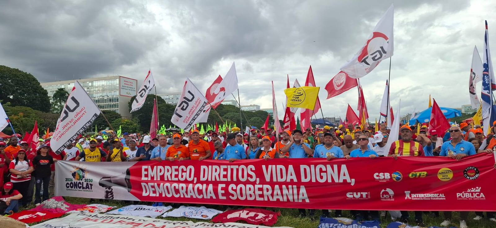 O ato reuniu milhares de trabalhadores e representantes sindicais de diversas regiões do Brasil, fortalecendo a unidade em torno de uma pauta construída coletivamente, que reúne dezenas de propostas voltadas à melhoria das condições de trabalho, geração de empregos e justiça social.